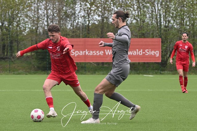 Fussball, Bezirksliga Ost, SG Weitefeld (grau) vs. FC Kosava Montabaur (rot), 28.04.2024 | ||