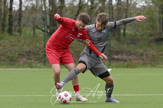 Fussball, Bezirksliga Ost, SG Weitefeld (grau) vs. FC Kosava Montabaur (rot), 28.04.2024 | ||