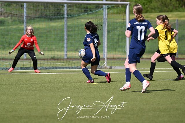 Fussball, Kreisliga, C-Juniorinnen, TuS Weitefeld (dunkelba) vs. MSG Arzheim (gelb/schwarz), 05.05.2024 | ||