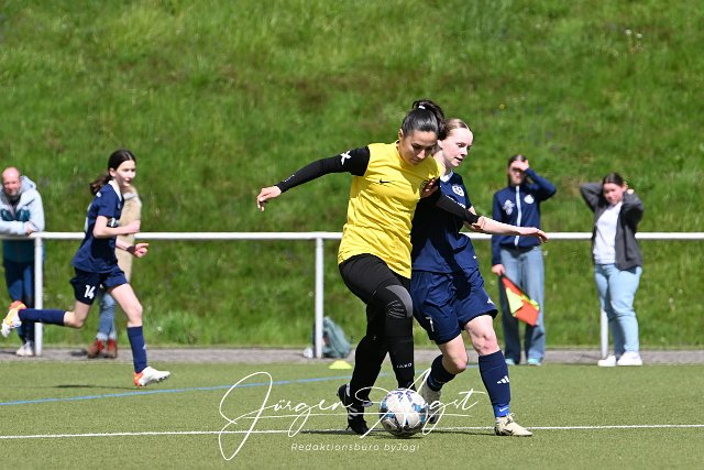 Fussball, Kreisliga, C-Juniorinnen, TuS Weitefeld (dunkelba) vs. MSG Arzheim (gelb/schwarz), 05.05.2024 | ||