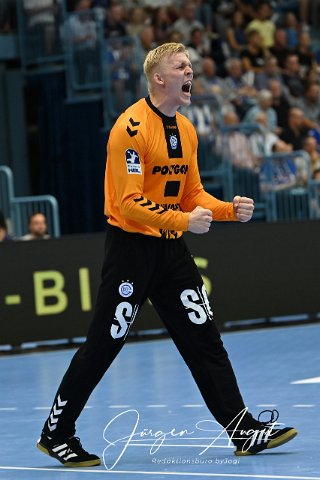 Feude bei Bertram Obling (VfL Gummersbach 16) Handball, EHF European Handball Federation, 2024-2025, Qualifikation, Rueckspiel, VfL Gummersbach vs. Mors-Thy Handbold, Schwalbe Arena Gummersbach, .08.09.2024 Foto: Eibner-Pressefoto/Juergen Augst | ||