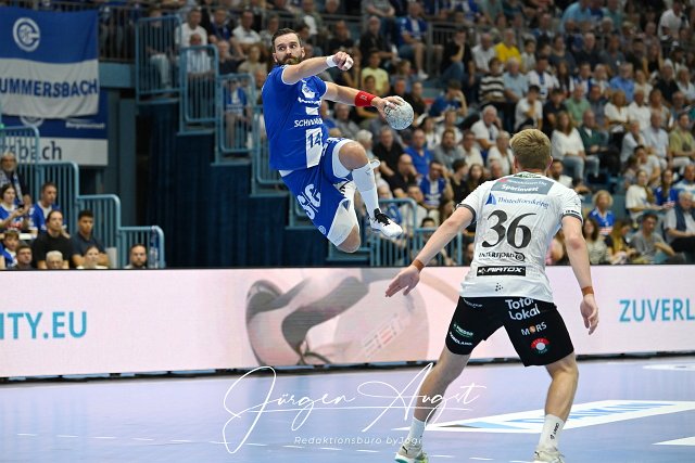 VfL Neuzugang Teitur Einarsson (VfL Gummersbach 14) ist eine wahre Verstaerkung fuer die Oberbergischen Handball, EHF European Handball Federation, 2024-2025, Qualifikation, Rueckspiel, VfL Gummersbach vs. Mors-Thy Handbold, Schwalbe Arena Gummersbach, .08.09.2024 Foto: Eibner-Pressefoto/Juergen Augst | ||