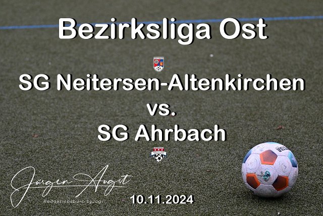 Fussball, Bezirksliga Ost, SG Neitersen-Altenirchen (rpt/blau)vs. SG Ahrbach (weiss), 10.11.2024 | ||