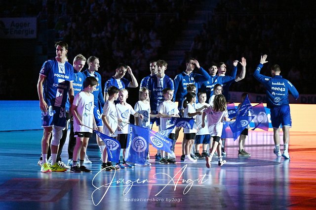 Die Spieler des VfL Gummersbach praesentieren sich den Fans in der Schwabe Arena in Gummersbach zum Heimspiel gegen den THW Kiel GER, VfL Gummersbach vs. THW Kiel, Handball, Daikin 1. Bundesliga, 11. Spieltag, Spielzeit 2024/25, 22.11.2024 Foto: Eibner-Pressefoto/Juergen Augst | ||