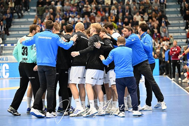 Die Spieler des THW Kiel vor dem Anwurf zum Auswaertsspiel in der Schwalbe Arena in Gummersbach GER, VfL Gummersbach vs. THW Kiel, Handball, Daikin 1. Bundesliga, 11. Spieltag, Spielzeit 2024/25, 22.11.2024 Foto: Eibner-Pressefoto/Juergen Augst | ||