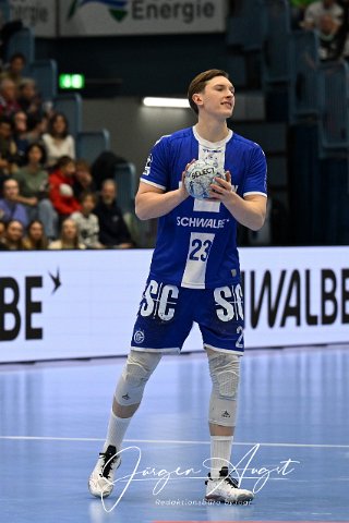Solobild Ole Pregler (VfL Gummersbach, #23) GER, VfL Gummersbach vs. THW Kiel, Handball, Daikin 1. Bundesliga, 11. Spieltag, Spielzeit 2024/25, 22.11.2024 Foto: Eibner-Pressefoto/Juergen Augst | ||
