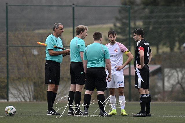 Fussball, Rheinlandliga, SG Malberg (schwarz) vs SV Rot-Weiss Wittlich (weiß), 22.02.2025 | ||