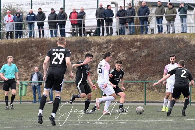 Fussball, Rheinlandliga, SG Malberg (schwarz) vs SV Rot-Weiss Wittlich (weiß), 22.02.2025 | ||