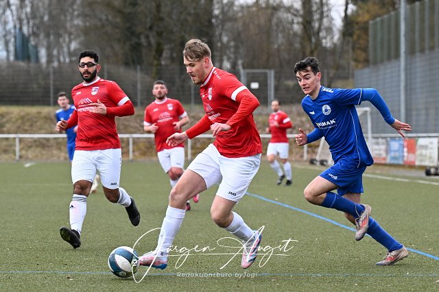 Fussball, Testspiel, SG Neitersen-Altenkirchen I (rot/weiss) vs. VfB Wissen II (blau), 01.03.2025 | ||