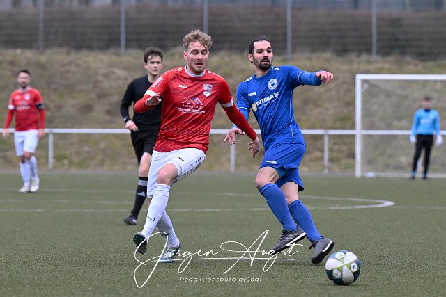 Fussball, Testspiel, SG Neitersen-Altenkirchen I (rot/weiss) vs. VfB Wissen II (blau), 01.03.2025 | ||