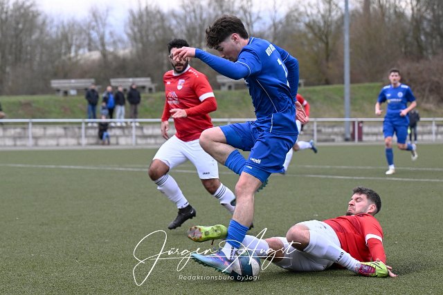 Fussball, Testspiel, SG Neitersen-Altenkirchen I (rot/weiss) vs. VfB Wissen II (blau), 01.03.2025 | ||