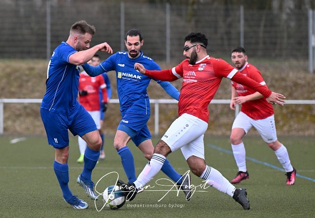 Fussball, Testspiel, SG Neitersen-Altenkirchen I (rot/weiss) vs. VfB Wissen II (blau), 01.03.2025 | ||