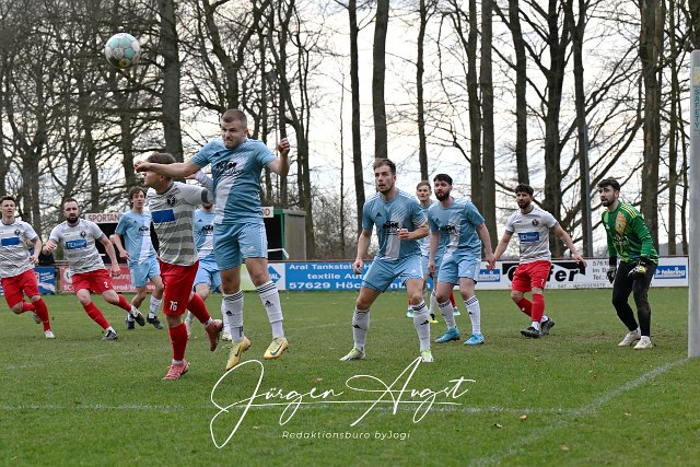 Fussball, Bezirksliga Ost, SG Berod-Wahlrod-Lautzert-Oberdreis (weiß-rot) vs. FC HWW Niederrossbach (hellblau), 23.03.2025 | ||