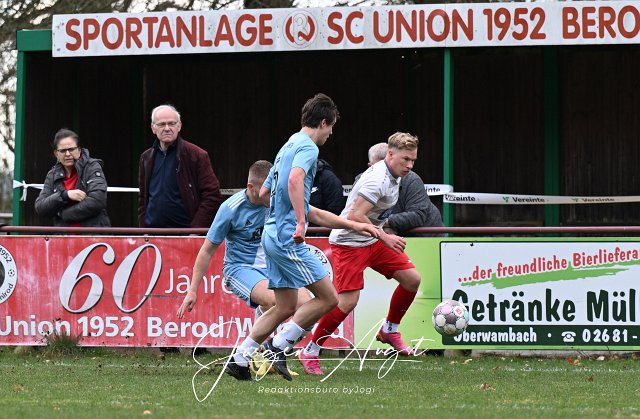 Fussball, Bezirksliga Ost, SG Berod-Wahlrod-Lautzert-Oberdreis (weiß-rot) vs. FC HWW Niederrossbach (hellblau), 23.03.2025 | ||