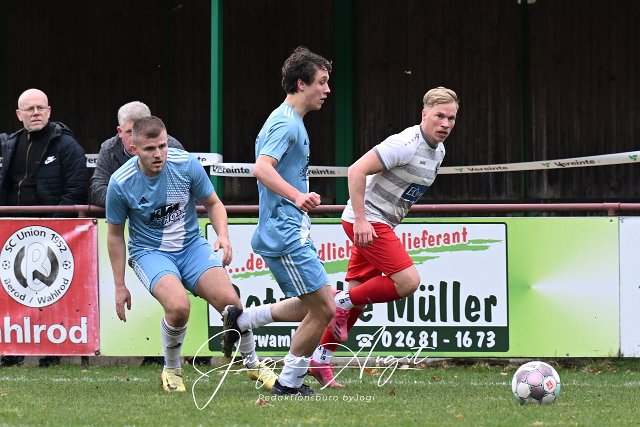 Fussball, Bezirksliga Ost, SG Berod-Wahlrod-Lautzert-Oberdreis (weiß-rot) vs. FC HWW Niederrossbach (hellblau), 23.03.2025 | ||