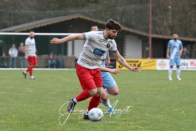 Fussball, Bezirksliga Ost, SG Berod-Wahlrod-Lautzert-Oberdreis (weiß-rot) vs. FC HWW Niederrossbach (hellblau), 23.03.2025 | ||