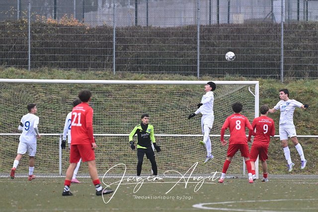 Fussball, Rheinlandliga B-Junioren, JSG Altenkirchen-Neitersen-Weyerbuscg (rot) vs. JSG Neuwied (weuß), 13.12.2025 | ||