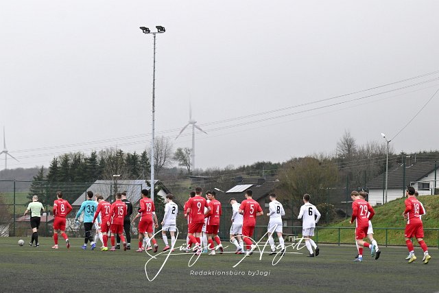 Fussball, Bezirksliga Ost, SG Malberg (rot) vs. TuS Asbach (weiß), 14.03.2026 | ||
