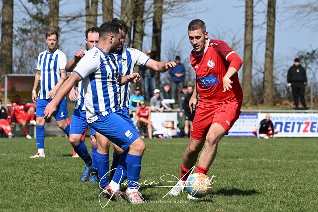Fussball, Kreisliga B1, SG Lautzert-Oberdreis-Berod-Wahlrod II (rot) vs DJK Friesenhagen (weiß/blau), 22.03.2026 | ||